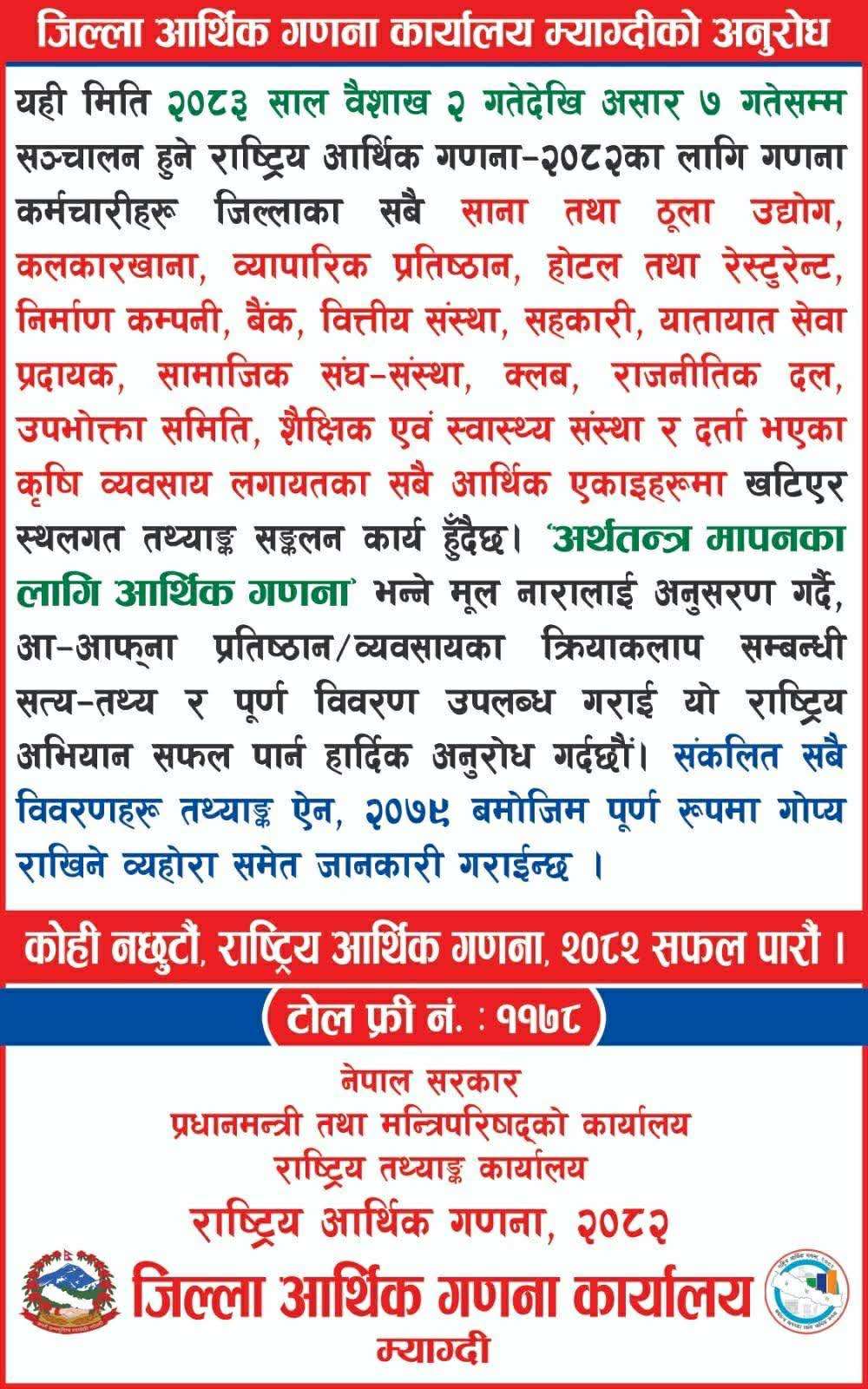 बेनी, ३ बैशाख । मंगला गाउँपालिकाले आर्थिक वर्ष २०८२/०८३ को... पुरा पढ्नुहोस