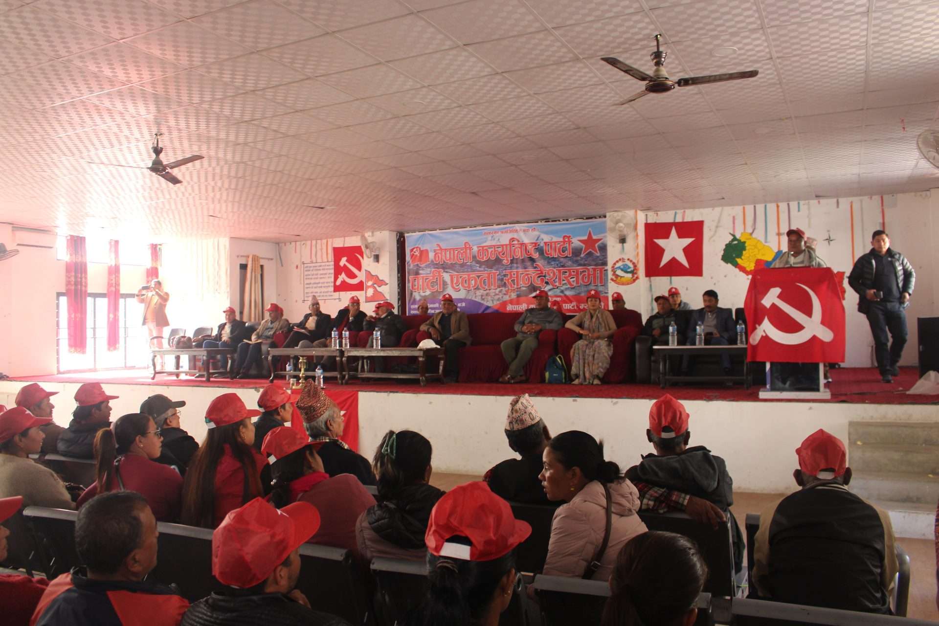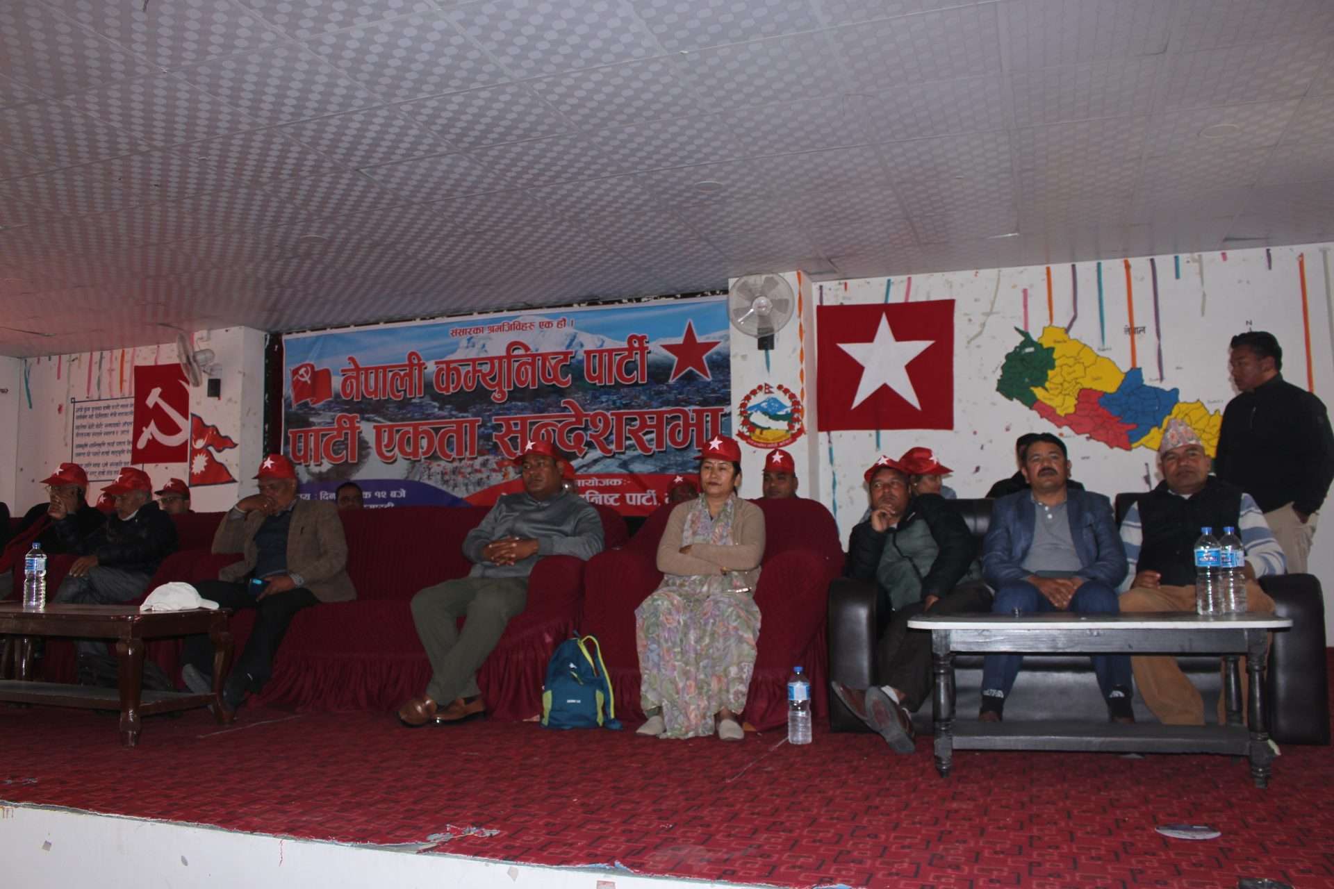 कार्यक्रममा नेताहरु ढाकाराम गौतम, गमबहादुर श्रीस, रेशम जुग्जाली, दुर्गा कार्की, कृष्ण विश्वकर्मा, सेरबहादुर केसी, हरि भण्डारी लगायतले जेनजी पुस्ताको आन्दोलनपछि देशमा सिर्जना भएको नयाँ परिस्थिति अनुसार रुपान्तरित भएर पार्टी एकता भएको बताउनुभयो । उक्त कार्यक्रममा धवलागिरी गाउँपालिका–६ का प्रेमबहादुर लामगाडे, गौबहादुर केसी (कृष्ण), बिनोद केसी र यान्जिङ केसी नेपाली कम्युनिष्ट पार्टीमा आवद्ध हुनुभएको छ । माओवादी पृष्ठभूमिका लामगाडे र गौबहादुर पछिल्लो समय एमालेमा हुनुहुन्थ्यो । बेनी नगरपालिका ४ सिंगाबाट पनि चार जना नेकपामा प्रवेश गर्नुभएको थियो ।