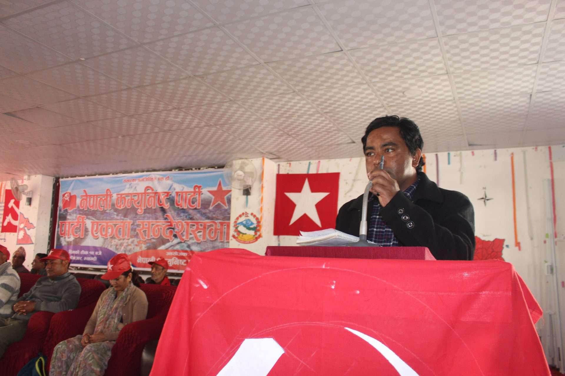 नेकपाका नेता श्रीनाथ बरालले देशको हित र सम्बृद्धिका लागि आत्मआलोचना सहित एकतावद्ध भएर कम्युनिष्ट तथा वामपन्थी पार्टीहरुबीच भएको धु्रबीकरणलाई सकारात्मक रुपमा लिन आग्रह गर्नुभयो । “हाम्रो एकता संसदमा उपस्थित संख्या बढाउन र चुनाव जित्नका लागि मात्र नसोच्नुहोला,” उहाँले भन्नुभयो “वैज्ञानिक समाजवादको लक्ष्य हाँसिल गर्नका लागि भएको यो एकतालाई दिर्घकालिन बनाउन विगतका कमजोरीबाट पाठ सिकेर अघि बढेका हौ ।”