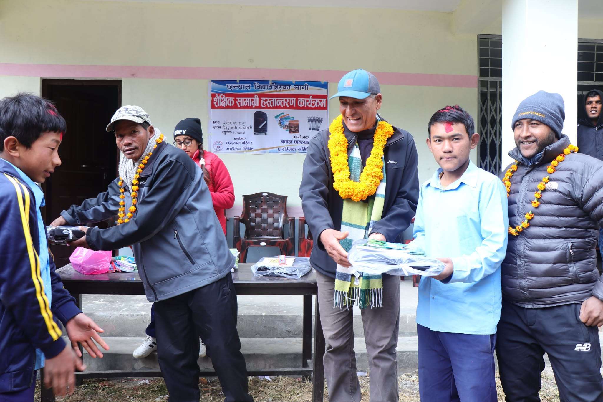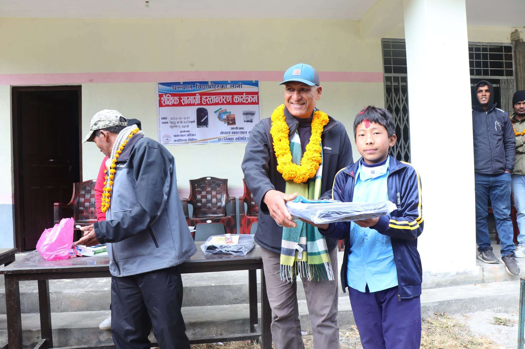 शनिबार नेपाल छन्त्याल संघ प्रारम्भिक समिति घ्यासीखर्कको समन्वयमा रघुगंगा गाउँपालिकाका अध्यक्ष भब बहादुर भण्डारीले विद्यार्थीहरुलाई शैक्षिक सामाग्री हस्तान्तरण गरेका हुन् । विद्यार्थीलाई शैक्षिक सामाग्री विवतरण गर्दै र अध्यक्ष भण्डारीले विदेशमा आफ्नो श्रम गर्न पुगेका व्यक्तीहरुले आफ्नो समुदायका विद्यार्थीको शैक्षिक क्षेत्रमा सहयोग गर्ने प्रयास उदाहरणीय भएको बताए । ‘यस्तो दुर्गम बस्तीमा रहेका सामुदायिक विद्यालयमा विद्यार्थीको संख्या कम हुदै गएका छन् ।