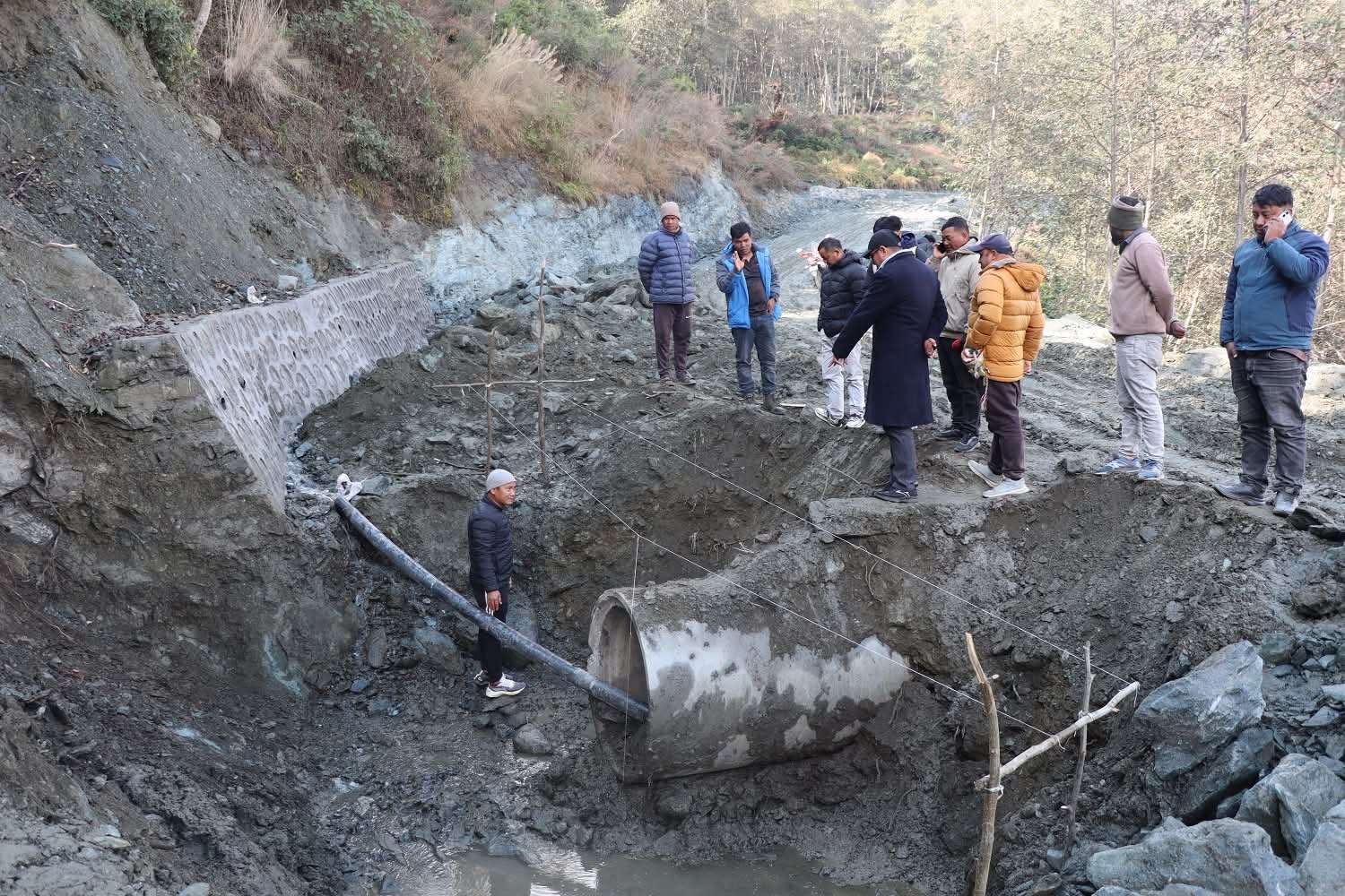 निर्माण कम्पनीका कर्मचारी मेक थापामगरले मजदुरहरूले लापरबाही गर्दा ग्राभेलका लागि तयार पारेको बेस पिसिसीमा प्रयोग भएको स्वीकार गर्दै कमजोरी सुधार गरिएको र गुणस्तर तथा मापदण्डमा संवेदनशील हुने प्रतिबद्धता जनाउनु भयो । पूर्वाधार विकास कार्यालयका सबइन्जिनियर घनश्याम रोकाले ह्युम पाइप राख्ने ठाउँमा बनाउने संरचना र निर्माण सामग्रीको गुणस्तरको विषयमा लिखित रूपमा स्पष्ट निर्देशन दिए पनि कमजोरी देखिनु ठेकेदारको कमजोरी भएको बताउनु भयो ।