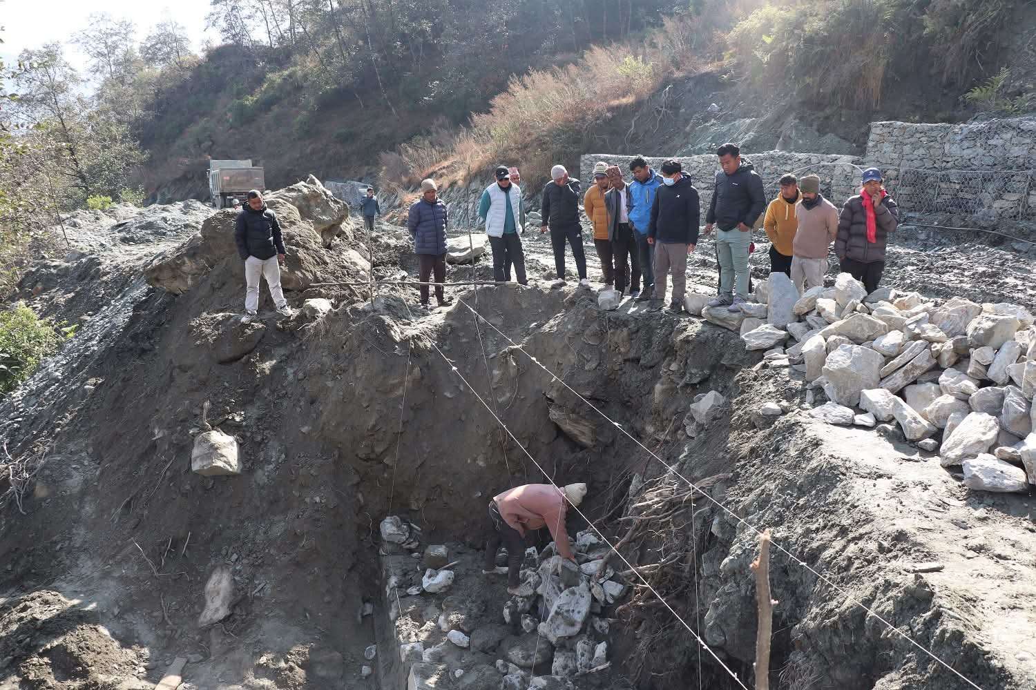 म्याग्दी । धवलागिरि गाउँपालिका–७ झिनडाँडामा माटो मिसिएको गिट्टी प्रयोग गरेर गरिएको ढलान जनप्रतिनिधिहरूले भत्काइदिएका छन् । दरवाङ–मुना–ढोरपाटन सडक योजनाअन्तर्गत झिनडाँडामा ह्युम पाइप अडाउन पर्खाल निर्माणका लागि जगमा पिसिसी ढलान गर्दा माटो मिसिएको गिट्टी प्रयोग भएको पाइएको हो । योजना अनुगमनका लागि सोमबार झिनडाँडा पुगेका गण्डकी प्रदेशसभा सदस्य रेशमबहादुर जुग्जाली (सुविन), धवलागिरि गाउँपालिकाका अध्यक्ष प्रेमप्रसाद पुन, उपाध्यक्ष रेशम पुनमगरले ढलान भत्काएर पुनर्निर्माण गर्न लगाएका छन् ।