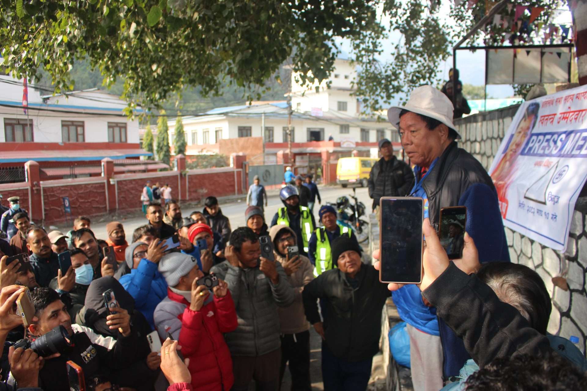 म्याग्दी, १० माघ । आगामी फागुन २१ गते हुने प्रतिनिधि सभा सदस्य निर्वाचनमा म्याग्दीबाट स्वतन्त्र उम्मेदवारी दिनुभएका पूर्वमन्त्री महावीर पुनले सडकमै पत्रकार सम्मेलन गरेर आफ्नो प्रतिबद्धता सार्वजनिक गर्नुभएको छ । मुख्य निर्वाचन अधिकृतको कार्यालयले त्रिभुज निर्वाचन चिन्ह प्रदान गरेसंगै पुनले शनिवार जिल्ला सदरमुकाम बेनीबजारको बिरेन्द्रचोकमा सडकमा पत्रकार सम्मेलन गरी आफ्नो चुनाबी प्रतिबद्धता घोषणा गर्नुभएको हो ।