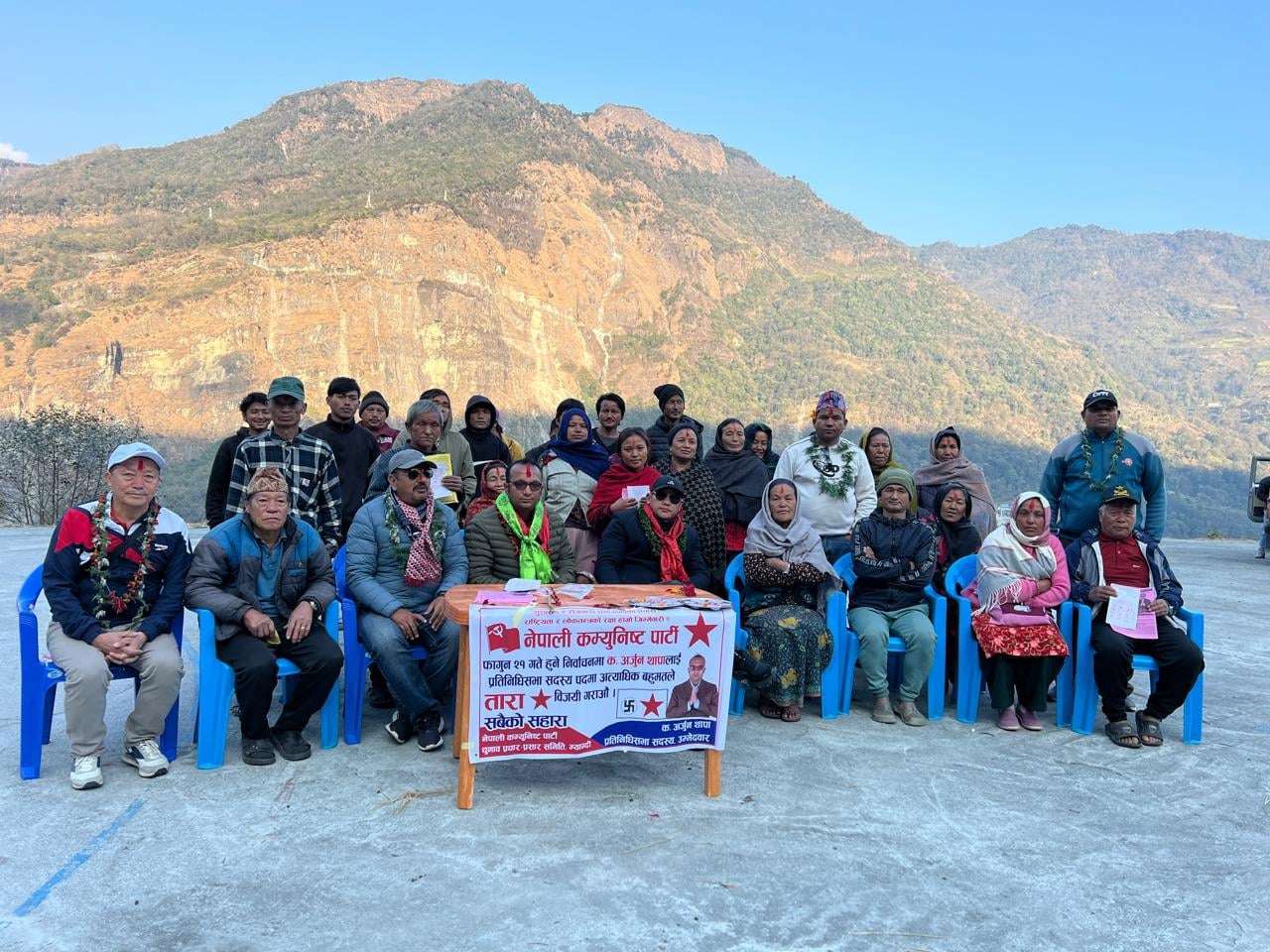 “प्रदेश तहबाट हामीले सुरु गरेका योजनाहरुलाई निरन्तरता दिनका लागि संघीय प्रतिनिधी पनि हाम्रै हुँदा काम गर्न सजिलो हुन्छ,” उहाँले भन्नुभयो “हामीले गरेका काम र पुरा गरेका प्रतिवद्धतालाई आधार मानेर राहुघाट कोरिडोरका जनताको साथ माग्न आएका हौ ।” भण्डारीले प्रदेशसभाबाट मगर र गुरुङ भाषालाई सरकारी कामकाजको भाषा बनाउने र घरेलु मदिरालाई बैधानिकता दिने कानुन बनिसकेको जानकारी गराउदै गाँजा खेती सम्बन्धी कानुन बनाउने अन्तिम तयारीमा रहेको जानकारी गराउनुभयो । झिँका अगुवा पदम शेरपुञ्जाले नेकपाका जनप्रतिनिधीहरुले पछिल्लो समय प्रदेश तहबाट गरेको कामबाट प्रभावित भएर उहाँहरुलाई साथ दिनका लागि नेकपामा सक्रिय भएको जानकारी दिनुभयो ।
