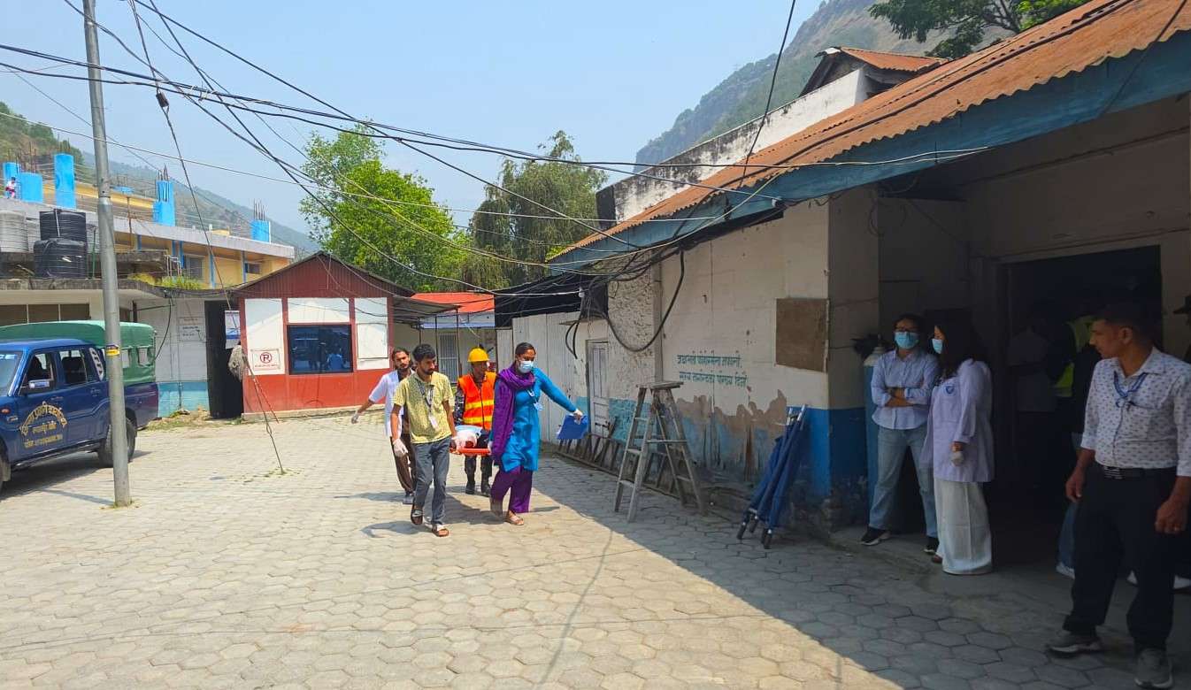 म्याग्दी, ६ वैशाख । म्याग्दीको प्रदेश अस्पताल बेनीमा आपतकालीन उद्धार तथा उपचार व्यवस्थापनसम्बन्धी कृतिम अभ्यास प्रदर्शन गरिएको छ। आइतवार विहान साढे १० बजे पोखराबाट मुस्ताङतर्फ जाँदै गरेको बस बेनी–गलेश्वर सडकखण्डमा दुर्घटना भएको परिकल्पना गर्दै अस्पतालको आपतकालिन उपचार दिने क्षमता र अवस्थाको जाँच गरिएको हो ।